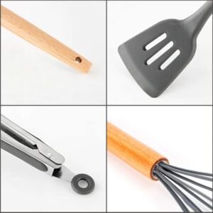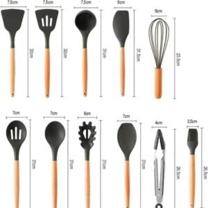 Jogo Utensílios de Cozinha em Silicone Cabo de Madeira 12 peças