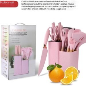 Kit de Utensílios de Cozinha em Silicone com Cabo de Madeira 19 Peças